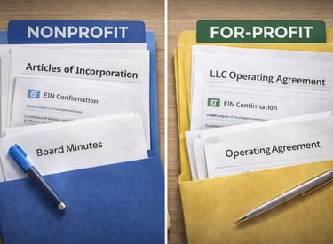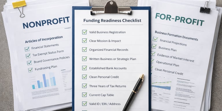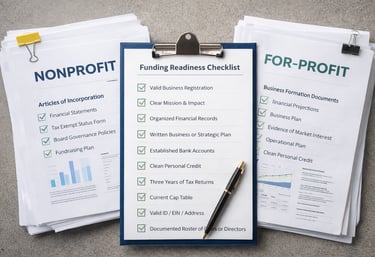 Learn the difference between for-profit and nonprofit paths and how entities must be properly structured and registered before applying for funding